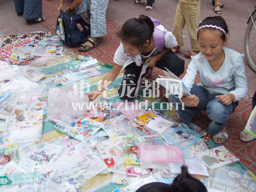 一開(kāi)學(xué),校門(mén)口出售的各種文具成了搶手貨。