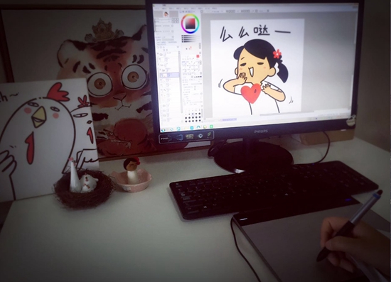 ????創(chuàng)作者正在繪制“制冷少女”表情。 受訪(fǎng)者供圖