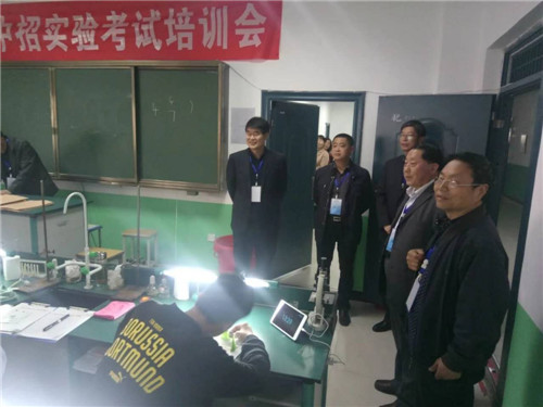 2019年度河南省中招理化生實驗操作考試正在進(jìn)行中,4月13日上午,鄲城縣教體局黨組書記、局長劉現(xiàn)營帶領(lǐng)副局長張祥增,黨組成員馬力彬,黨組成員、縣政府督學(xué)陶永昌等的陪同下,深入考點考場巡察理化生實驗操作考試工作。