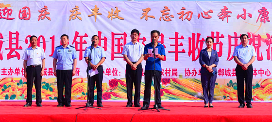 9月23日,中國(guó)農(nóng)民豐收節(jié)。鄲城縣在世紀(jì)廣場(chǎng)隆重舉辦慶?;顒?dòng),萬(wàn)眾歡聚慶豐收、迎國(guó)慶、不忘初心奔小康。