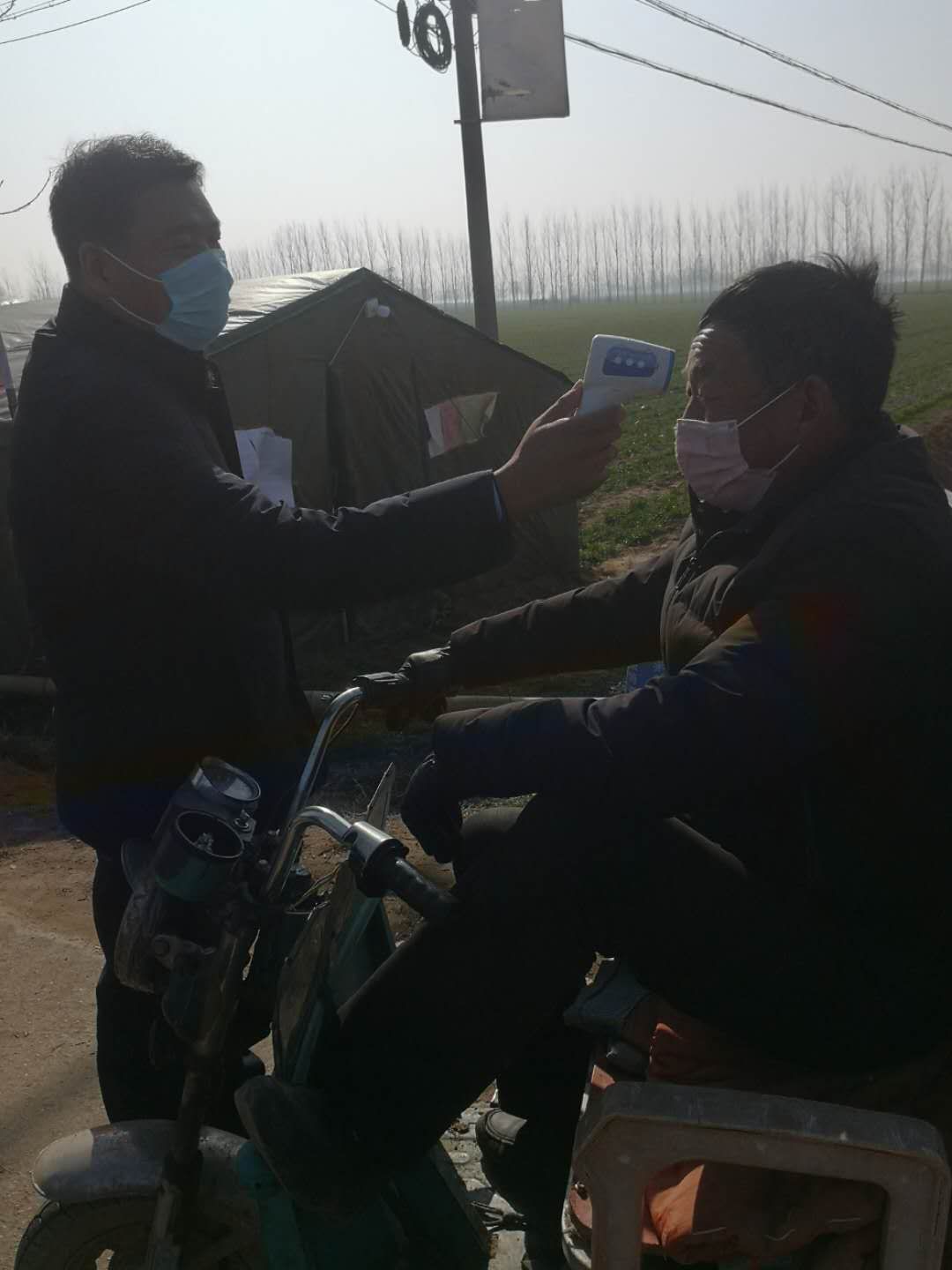 由于物資未曾到位,檢測(cè)點(diǎn)僅簡(jiǎn)單搭了一頂四面透風(fēng)的帳篷,紀(jì)占東跟其他工作人員一起在寒風(fēng)中檢查登記出入人員、測(cè)量體溫,天氣寒冷,吃飯也只能用饅頭、泡面對(duì)付,但是內(nèi)心是火熱的。紀(jì)占東說(shuō)在防控工作中,絕大部分群眾理解和支持的,有群眾在家里燒好開(kāi)水給值班人員送,還有的群眾送來(lái)暖手寶、熱氣騰騰的飯菜......這些都是他工作的動(dòng)力和源泉。