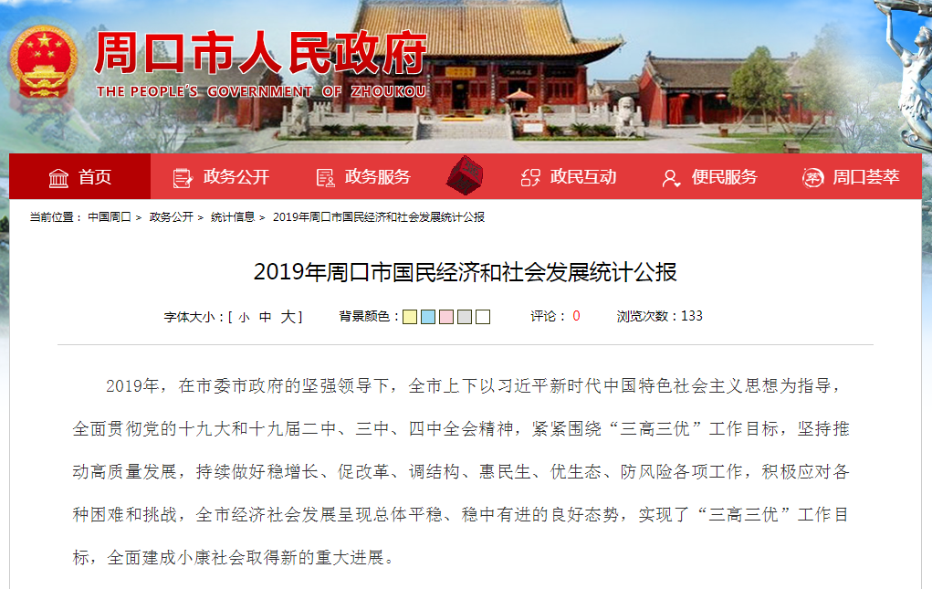 《2019年周口市國民經(jīng)濟(jì)和社會發(fā)展統(tǒng)計(jì)公報》,