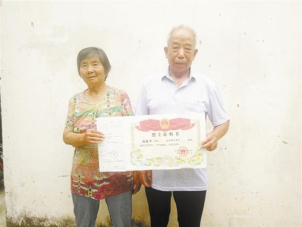 家人手持沈東平烈士證書,表示永不忘記先輩遺愿。