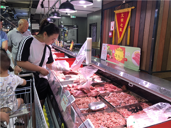 “太貴了,吃不起了,現(xiàn)在吃豬肉才是’土豪’的象征?!爆F(xiàn)在,豬肉價格已經(jīng)成了市民互相調(diào)侃的話題之一。近日,國家統(tǒng)計局河南調(diào)查總隊發(fā)布數(shù)據(jù)稱,7月份,河南居民消費(fèi)價格指數(shù)(CPI)同比上漲2.9%。豬肉價格繼續(xù)領(lǐng)漲,上漲87.2%。但記者走訪發(fā)現(xiàn),周口一些超市的豬肉價格不僅沒漲,反而有小幅下降。對此,周口業(yè)內(nèi)人士稱,周口區(qū)域的豬肉價格近一周之內(nèi)波動不大,還會有小幅回落,但從長期來看,可能還會面臨上升趨勢。