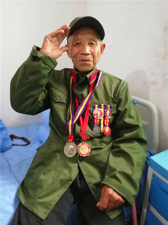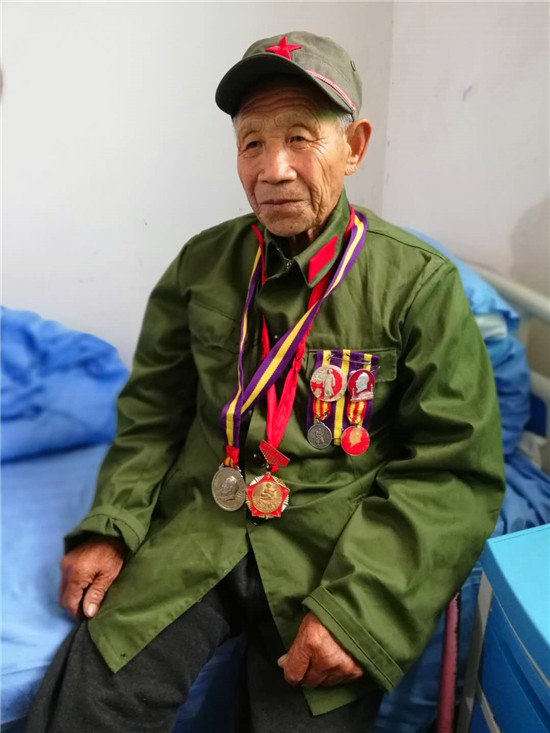 說到防空洞,趙隆興眼圈一紅,有淚珠在閃動(dòng)。他說:“前幾天,天冷了,鎮(zhèn)領(lǐng)導(dǎo)安排人在衛(wèi)生院找個(gè)專門的病房讓我住院檢查??h退役軍人事務(wù)局和鎮(zhèn)退役軍人服務(wù)站的同志還為我送來了新被褥,真讓我感動(dòng)!在朝鮮那三年,我天天住防空洞,哪蓋過被子啊。雖然朝鮮的冬天極冷,但我都是和衣而睡,隨時(shí)出征。如今,有這么多同志想著我,我覺得這一輩子,值了!”