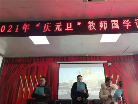 12月25日下午,沈丘縣周營鎮(zhèn)中心學(xué)校舉辦以誦讀與經(jīng)典同行為主題的“慶元旦迎新年”中小學(xué)教師國學(xué)精典誦讀比賽。比賽現(xiàn)場,轄區(qū)周營一中、周營中心小學(xué)、黃孟營小學(xué)等12所學(xué)校12支代表隊42名中小學(xué)教師紛紛登臺角逐。來自全鎮(zhèn)120名中小學(xué)語文教師及鎮(zhèn)主要領(lǐng)導(dǎo)、中心學(xué)校領(lǐng)導(dǎo)、評委現(xiàn)場觀摩比賽。
