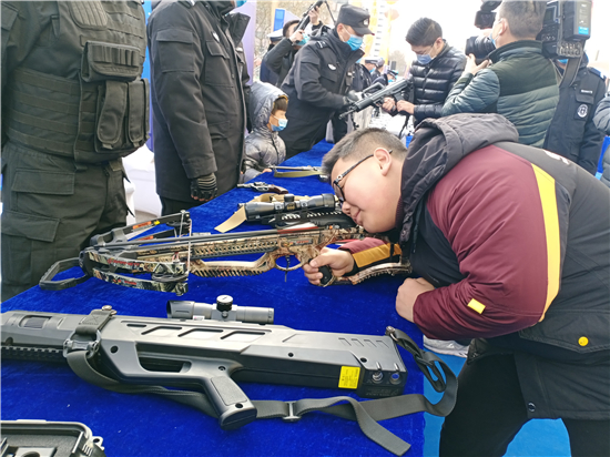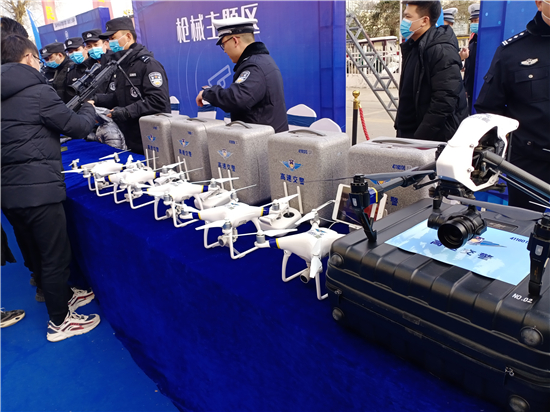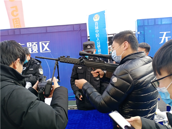 活動現(xiàn)場設(shè)置了“反假幣主題區(qū)”“消防主題區(qū)”“防電詐主題區(qū)”“禁毒主題區(qū)”“互動區(qū)”等形式多樣的功能展示區(qū),現(xiàn)場接受群眾咨詢,與市民深度互動,讓市民近距離體驗(yàn)、全面感受人民警察的日常工作。除此之外,民警還進(jìn)行了槍械展示、無人機(jī)展示等內(nèi)容。