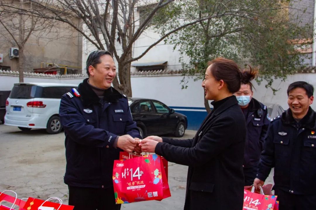 站好城市第一班崗的還有公安民警,為了城市的平安,公安民警常常值守夜班。萬順達廣場當天為周口市公安局川匯分局陳州派出所的民警們送上了臘八祝福,提醒他們在守護市民平安的同時,也別忘了關心自己。