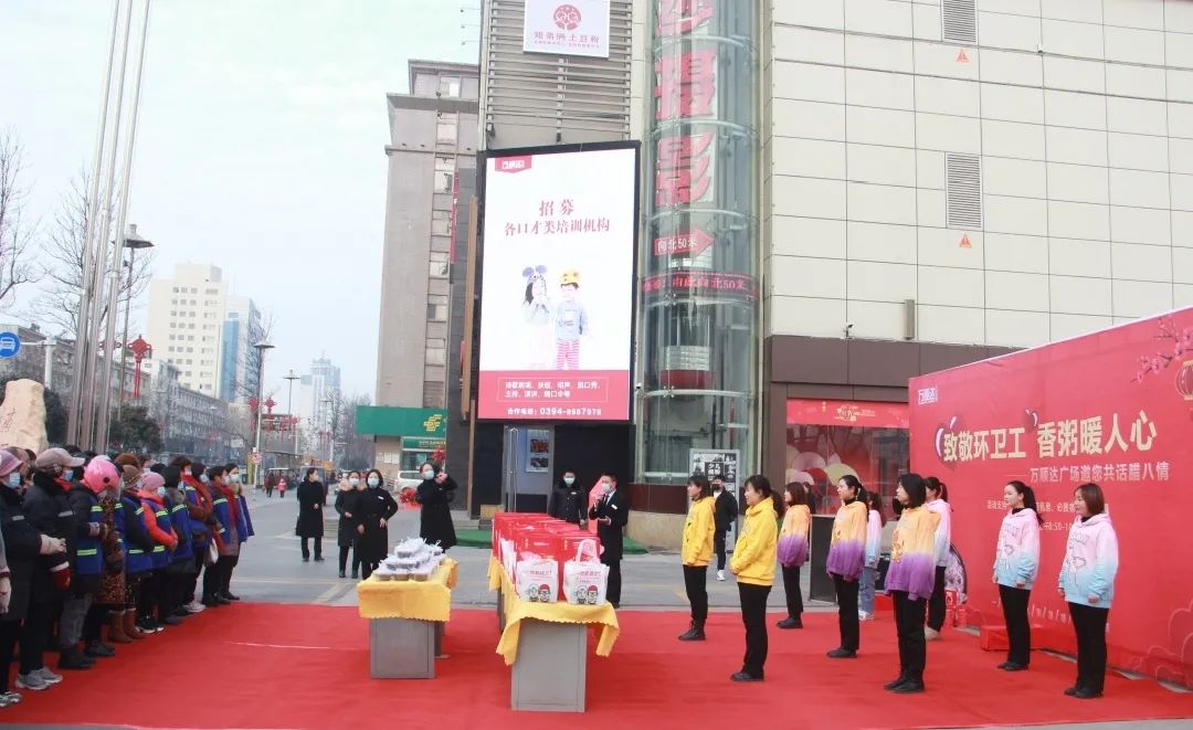 本次活動的主題是“一碗臘八粥,溫暖一座城”。當忙碌一陣后的環(huán)衛(wèi)工人來到萬順達廣場門前時,萬順達廣場的工作人員一曲《好運來》和《你笑起來真好看》,讓整日忙碌的做著重復而又枯燥工作的環(huán)衛(wèi)工人們臉上笑開了花。