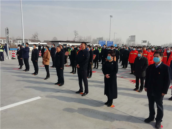2月7日上午,總投資1.62億元的商南高速淮陽(yáng)新高速出入口羲皇故都站正式通車,6進(jìn)10出的高速出入口將改變過(guò)去出入高速擁堵的現(xiàn)象。副市長(zhǎng)胡軍下達(dá)通車令,省高速公路發(fā)展有限公司副總經(jīng)理殷蔚明,市政協(xié)副主席、淮陽(yáng)區(qū)委書(shū)記馬明超等出席通車儀式。