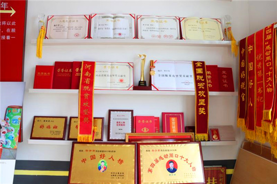 路修好了,村民為韓宇南送來(lái)了第一面錦旗。在以后的幾年里,群眾多次自發(fā)給韓宇南送來(lái)錦旗,近40面錦旗重重疊疊掛滿了村委會(huì)的整個(gè)北墻。
