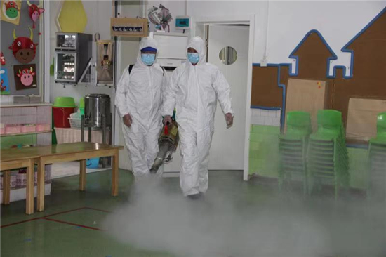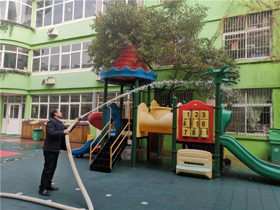 2月27日下午, 周口市市直幼兒園聯(lián)系周口市藍(lán)天救援隊(duì)專業(yè)消殺人員,對(duì)幼兒園的公共區(qū)域環(huán)境、大型玩具、走廊、活動(dòng)室等場(chǎng)所逐步實(shí)施消殺,重點(diǎn)對(duì)樓道、樓梯扶手、衛(wèi)生間等關(guān)鍵區(qū)域?qū)嵤┟芗?,做到全面、徹底、不留死角?/p>