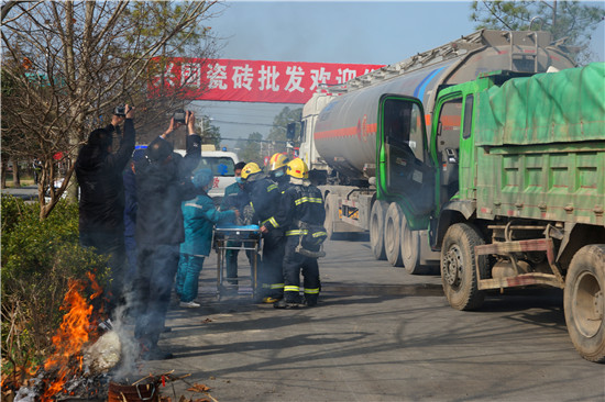 據(jù)介紹,通過本次演練,河南省公安交警總隊(duì)、周口市公安局、項(xiàng)城市委市政府進(jìn)一步檢驗(yàn)了對危險品運(yùn)輸車事故的應(yīng)急反應(yīng)和處置能力及省際?;方煌ㄊ鹿示仍幹玫目茖W(xué)性、適用性和可操作性,促進(jìn)了應(yīng)急搶險工作的規(guī)范化、常態(tài)化,加強(qiáng)了交警、應(yīng)急、環(huán)保、消防、醫(yī)療、交通、搶險救援等各部門協(xié)作聯(lián)動,提高了應(yīng)急管控水平,取得了良好的社會效果。②10