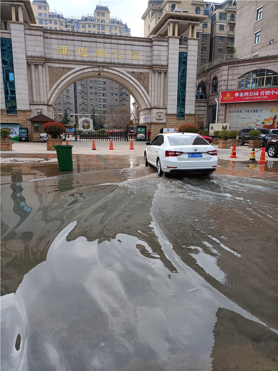 居住在維也納小區(qū)的幾位居民分析說(shuō),維也納大門(mén)前邊的污水有可能是對(duì)面施工堵塞下水道后造成污水溢出造成的。記者又來(lái)到維也納小區(qū)對(duì)面的馨蓮茗苑小區(qū)門(mén)前,那里路面沒(méi)有積水,正在進(jìn)行的市政工程施工工地也沒(méi)有看到有大量污水流淌,在馨蓮茗苑大門(mén)東邊不遠(yuǎn)處有一條挖開(kāi)的管道溝槽,溝槽的底部有少量污水。剛下班的一名工人師傅說(shuō),現(xiàn)在他們正在修建新的下水道,管道建好還得一段時(shí)間,舊的排水管道還在使用,至于路南邊的污水與正在施工的工程有沒(méi)有聯(lián)系,他們也說(shuō)不清楚。